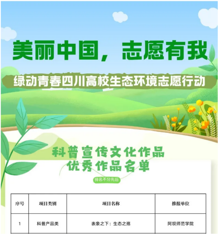 在2025年川渝大学生“残疾预防・青春同行”残疾预防创意作品征集大赛中,阿坝师范学院学子凭借多元的创意形式与深厚的人文关怀,一举拿下4个奖项。文创类作品《“防残护星芒,残梦亦生光”——预防残疾关爱残疾人文创设计》斩获特等奖;视频类作品《爱之游漪:圈住生命的温度——我们在巴蜀大地行动》与《残疾预防》双双荣获二等奖;个人参赛作品《防残于未然,健康共相伴》荣获三等奖。这些成果充分彰显了我校师生在公益创意与社会服务领域的卓越风采。